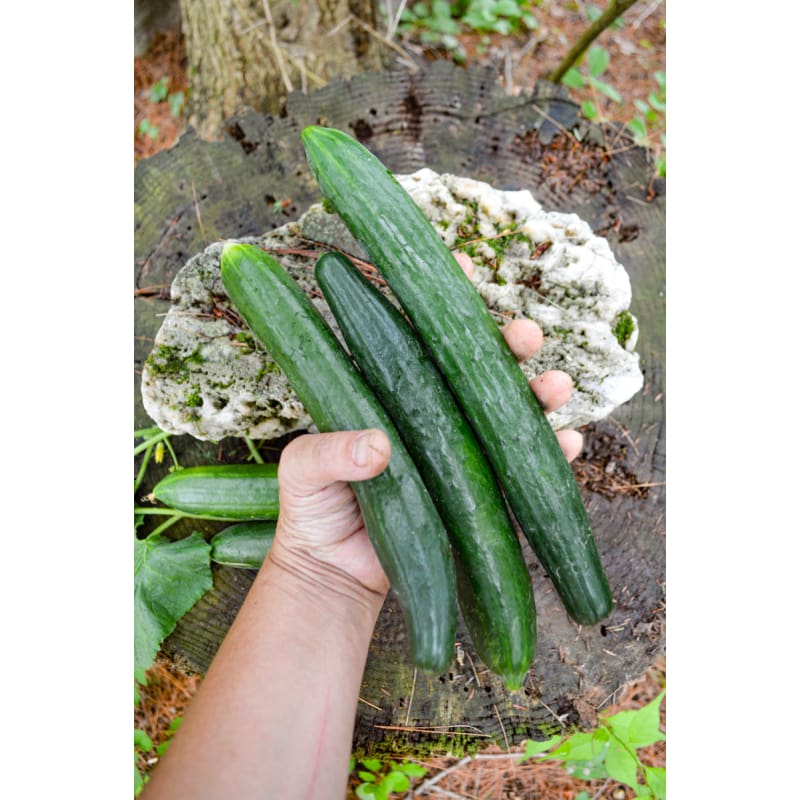 The Garden Sweet Burpless Cucumber is mild flavored as the name implies, these 11”, disease-resistant cukes are great for pickling or eating fresh. Vines are vigorous climbers, yields are heavy. Skin is very smooth and the flesh is bitter-free. A hybrid of the Japanese long cuke. Resistant to downy and powdery mildew.