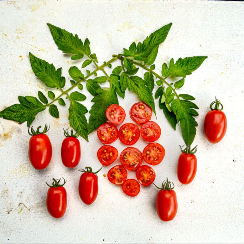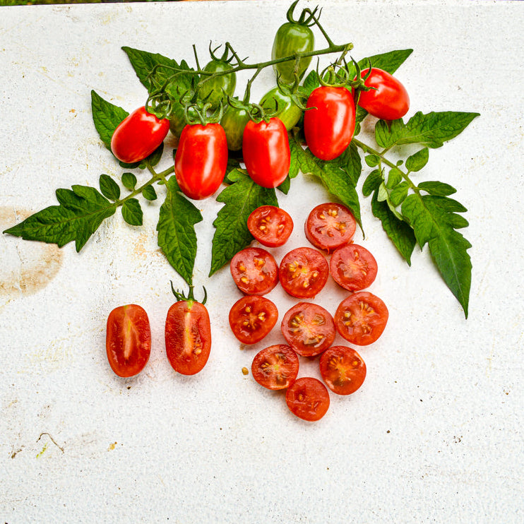 Candy Bell is the ideal grape tomato with long trusses of sweet fruits, 9 on the Brix scale. Our plants even grew some double trusses that held a total of 26 tomatoes and I have eaten half of them while writing this, so yummy! Little to no pruning is required for these strong, super-producer plants. Consistent fruit size with good crack tolerance and some disease resistance. Verticillium and Fusarium races 1 & 2.