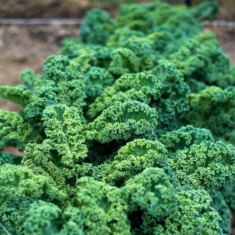 Heirloom 1863. The Dwarf Blue Curled Kale is so attractive that it can be grown for its appearance alone. Finely curled blue-green leaves are carried on compact, 1’ plants. Great fresh or cooked, either before or after a frost. Plant four plants per square foot.