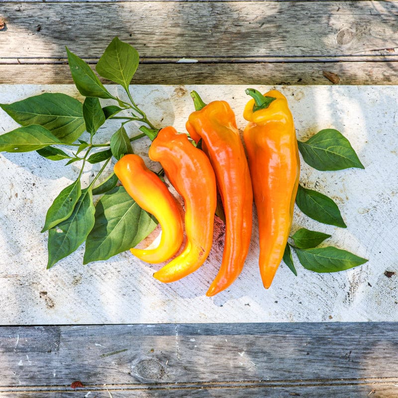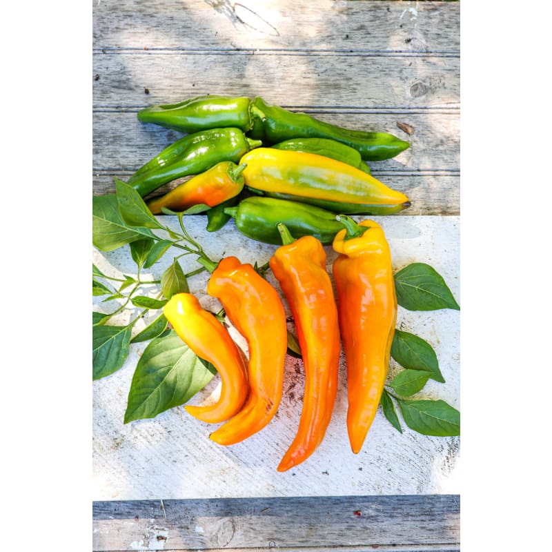 Long tapered Italian peppers with thin walls and a crunchy texture. Marconi Golden Pepper offering a gentle sweetness, while the Red Marconi is the sweetest. Plants flourish with fruits that are great for frying, stuffing, or sliced into rings for salads.