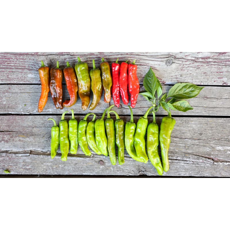 Tips: Pinch off early flowers or tiny fruit on any seedlings before placing them in the ground. The Italian Pepperoncini Pepper should be planted in fertile soil and amended with compost if needed. It helps to use row cover early in the season, giving the plants extra warmth, especially in the north. Side dress when flowers begin to form.