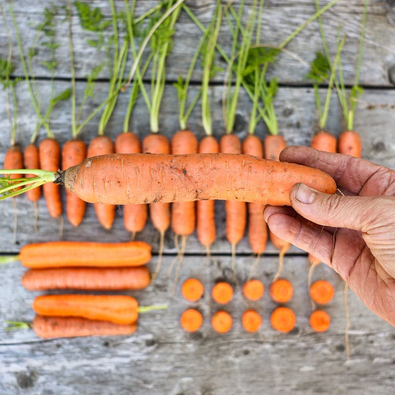 Harvest: Start when carrots reach finger size for baby carrots. Carrots planted for summer harvest will hold in the ground for a few weeks but tend to split if they stay in the ground too long. Late season carrots hold longer and become sweeter in the cooler weather.