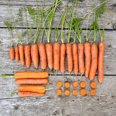 While the earliness for a Nantes type is exceptional, we are even more impressed with the quality of the roots, and particularly the good, not-too-sweet flavor of the Napoli Carrot. Length is about 7” and will tolerate thick sowing.