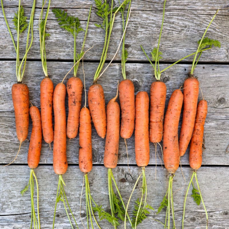 Tips: Using a row cover helps to maintain moisture for germination. The Napoli Carrot prefers a loose soil, free of rubble. Use the shorter varieties for heavy soils. Keep well weeded and cover any exposed carrot with soil or mulch to prevent greening. An excess of nitrogen in the soil cause the roots to become hairy.