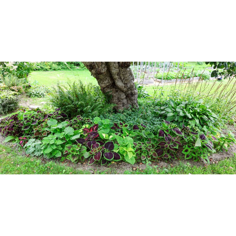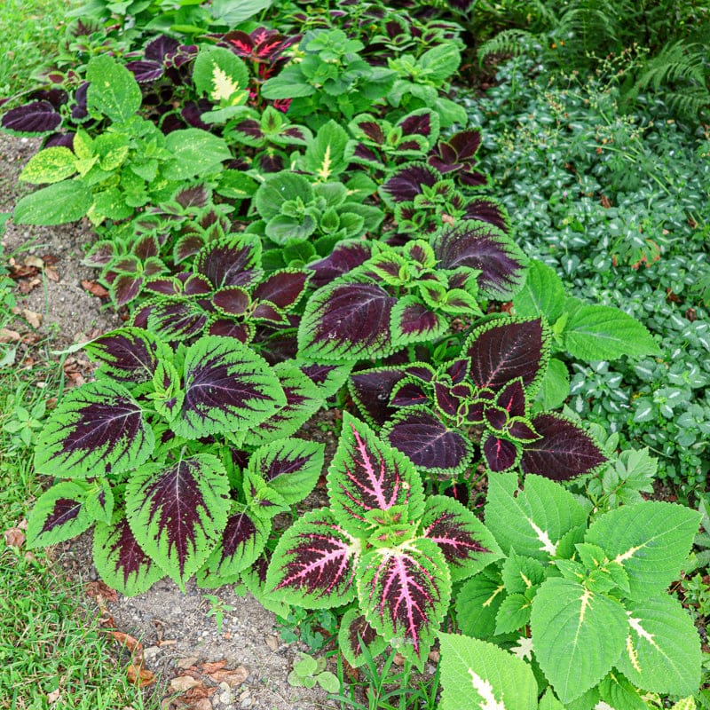 Plants are about one foot high and ideal for borders and as houseplants. The rainbow variety is one of the most popular coleus, and this mixture includes the complete color band, from cream to deep scarlet. They do need to have the flower buds removed if you want them to stay compact. If they bloom, they tend to become leggy.
