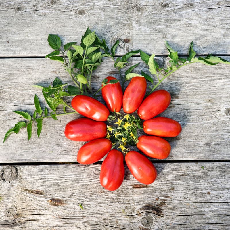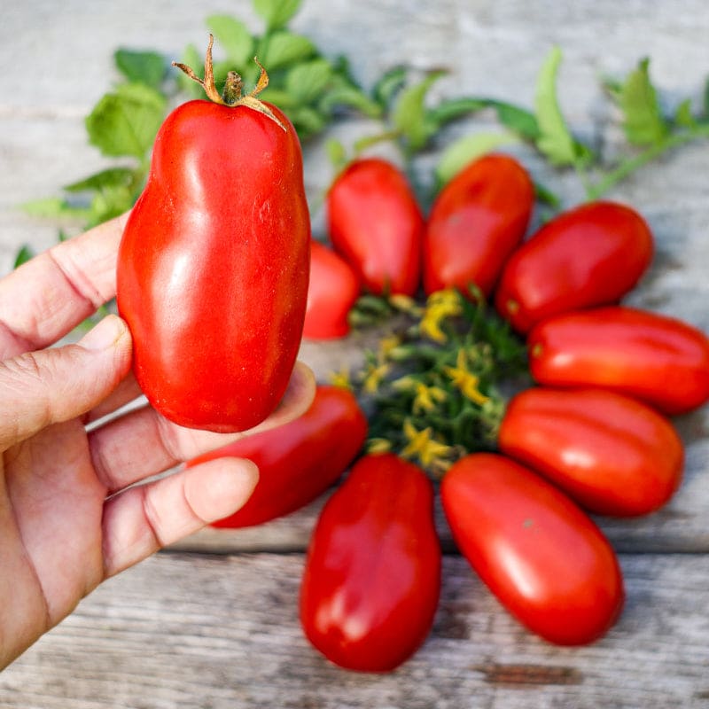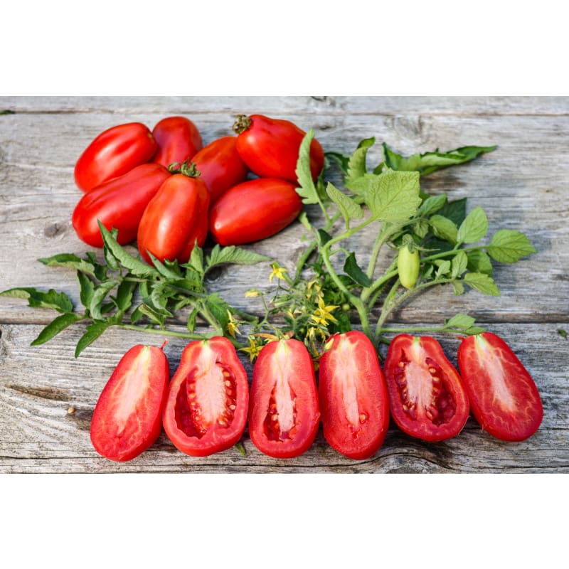 Tips: The San Marzano Tomato should be planted in fertile soil, amended with compost, mulch, and provide even moisture. Plant deeper than they were growing in the containers, as it makes a stronger root system. Apply a light compost tea every few weeks. Do not apply excessive nitrogen, which can promote excessive foliage and poor fruit set.
