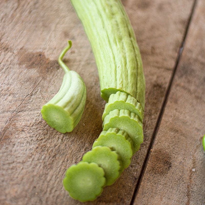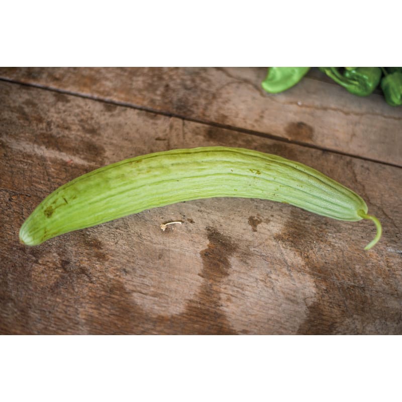 The Armenian Cucumber is a Middle Eastern Heirloom pre-1400. This long, pale green cucumber with white flesh is deliciously different. If grown on a trellis, the fruit will be long and straight, but they will curl if grown on the ground. Fruit remains edible, tender, and tasty at a larger size than most cukes. The Armenian Cucumber is a relative of the honey dew melon.