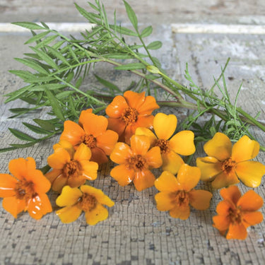 Also known as Mexican Tarragon, Sweet Mace, or Spanish Tarragon. Edible golden flowers and foliage have an anise flavor, slightly hinted with citrus. Mexican Mint Marigold is used in gourmet dishes and can be substituted for French tarragon. A tidy upright bush growing up to 24", covered with clusters of golden yellow flowers in late summer. Holds its simple bright flowers for a long time and is beautiful in herb, flower, or container gardens. Zone 8-11.