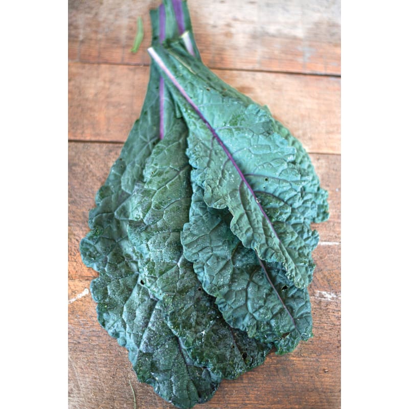 We just had to trial this new variety simply because of its name. As we watched the Dazzling Blue Kale grow and mature into impressive, upright, lightly wrinkled, strap leaved lacinato type plants, we fell in love with it. The leaves really do have a blueish cast to them and pinkish- purple colored midribs branching out into the veins. The Dazzling Blue Kale is also hearty, and like other kales, will sweeten after a frost.