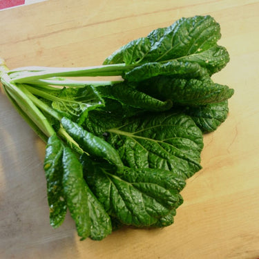 The Misome Greens are a glossy, round savoyed leaf green with thick and tender stems that are a cross between komatsuna and tatsoi. Upright plants can be grown all season and intensify in taste as they mature. Use Misome Greens for stir-fries and pickling.