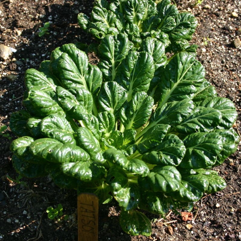 Also called spinach mustard or spoon mustard, it has dark green spoon shaped leaves and white stalks. The Tatsoi Greens grow in a thick rosette close to the ground and are eaten raw or added to stir-fries. May be harvested at once or the leaves can be picked individually for mixed salads. The Tatsoi Greens are great to grow in the fall into winter as they can withstand temperatures down to 15°.