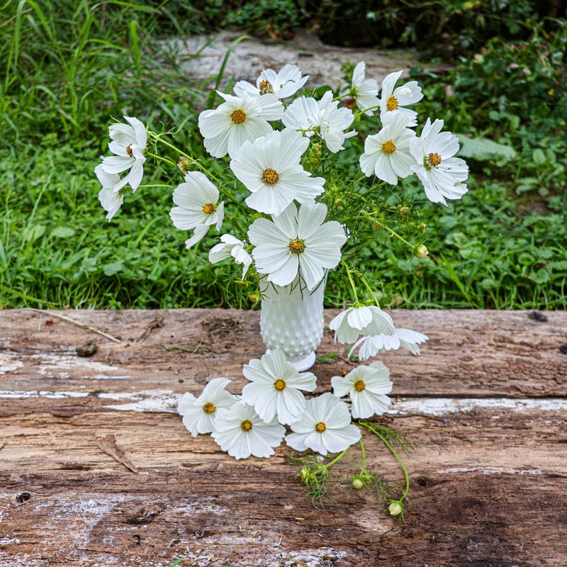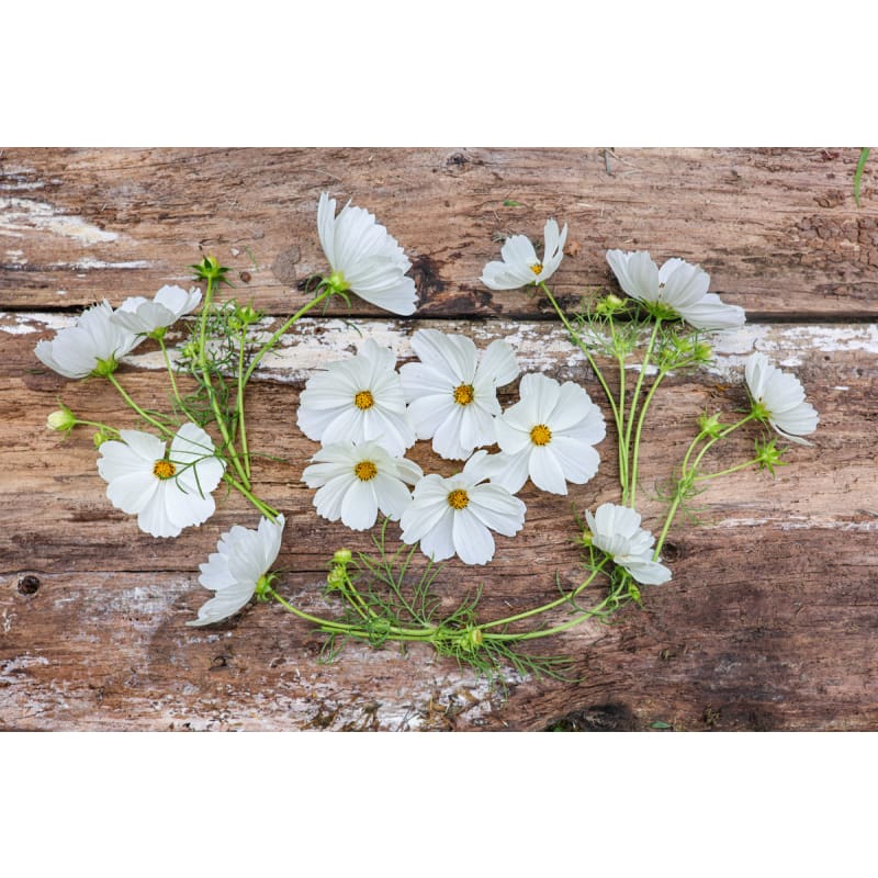 Pure white. A classic summer flower having large 4" to 6" blooms on 3 ft. to 4 ft. tall stems. The foliage is finely cut, and the plants branch out and bloom profusely and continually.