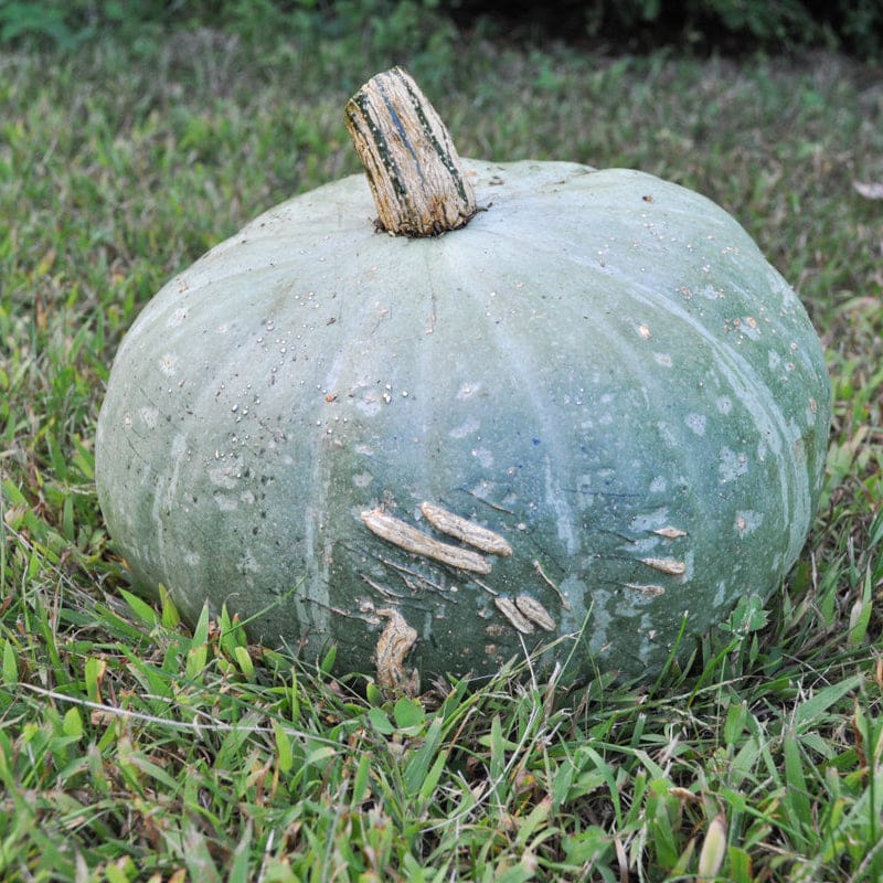 Harvest: Before heavy frost. Determine ripeness when the skin has turned color and becomes dull dry. You will be unable to create a dent when pressing your thumbnail into it. Leave two inches of the stem on the squash and manage carefully so there is no damage which can shorten storage life. Cure for 7-10 days in the sun to harden the rind and increase storage quality. Wipe any debris off skin before storing in a cool dark place with 50-55ºF temperatures and 50-65% humidity.