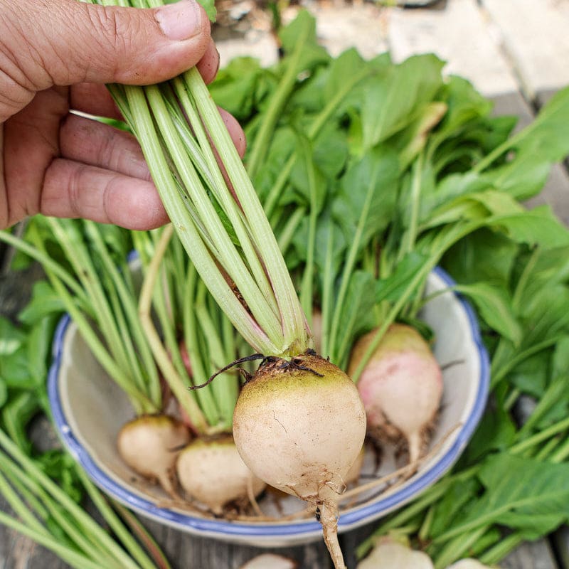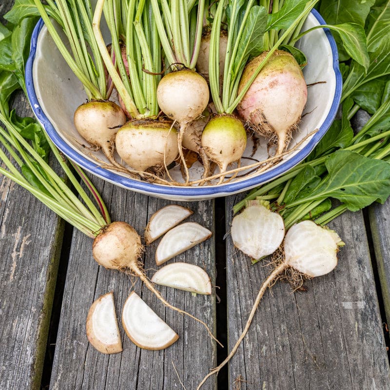 White roots have a mild, sweeter flavor with much less of that earthy, beety taste than red ones, plus they don't leave any of those red stains behind on your fingers. Dependable, 2-3” round roots are quick and easy to grow and tolerant to Cercospora leaf spot for healthy, clean foliage.  Avalanche beet is a 2015 AAS Winner.