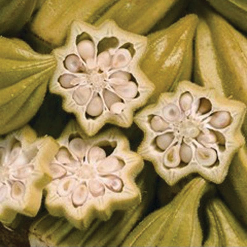 Star of David Okra are vigorous plants, very tall and productive. They produce a multitude of 5 inch, flavorful pods. When the pod is cut open, the cross section reveals a Star of David.