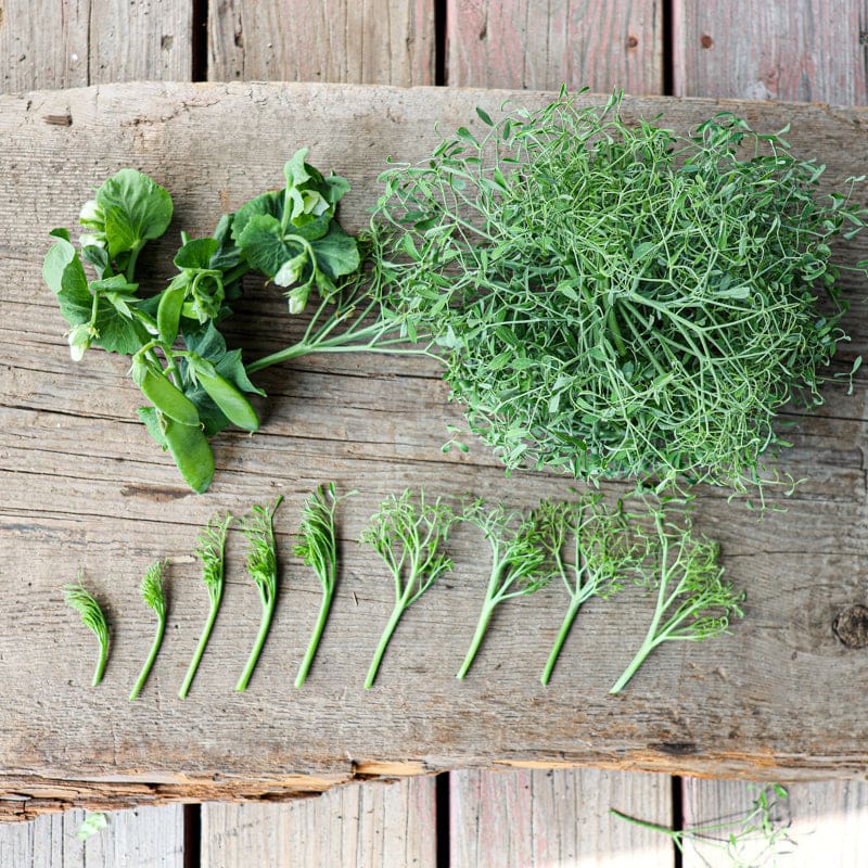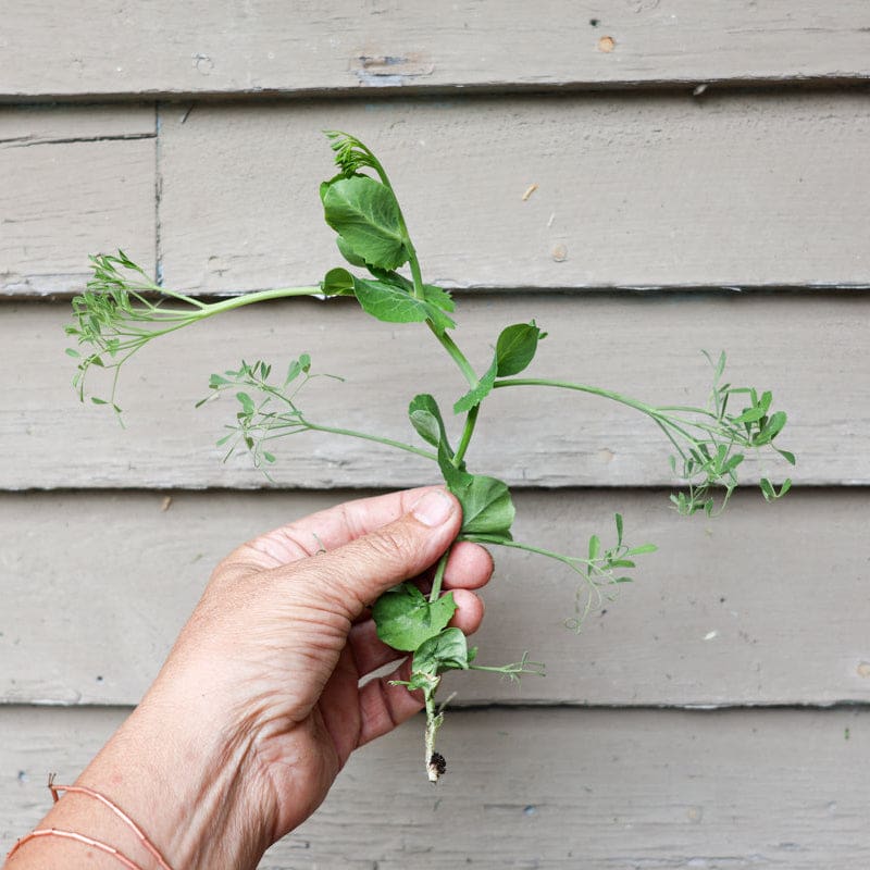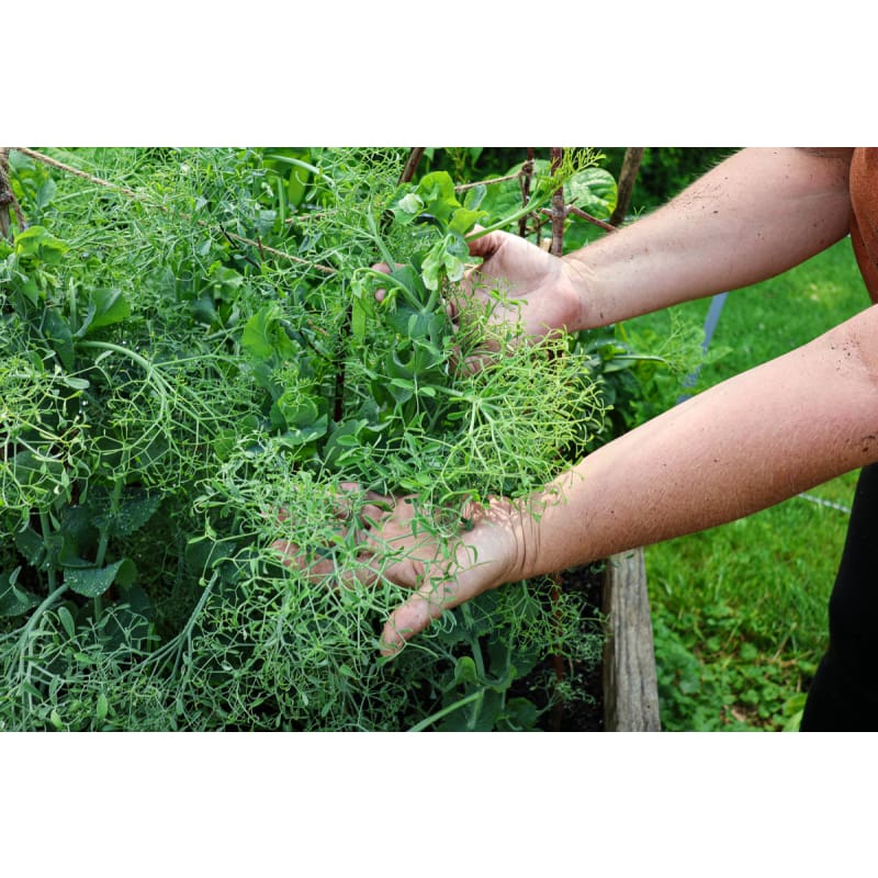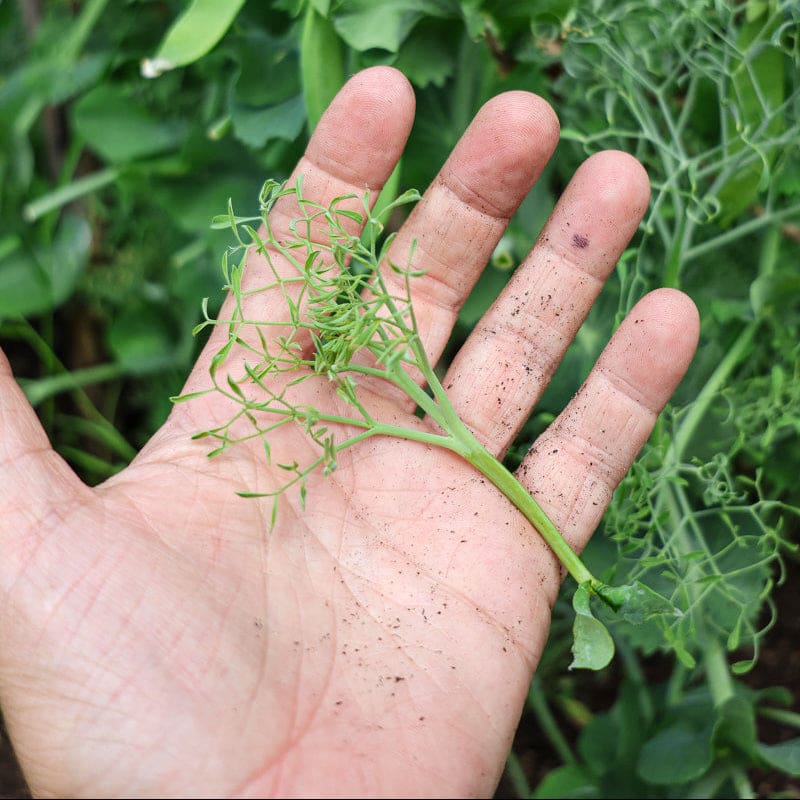 Edible tendrils, leaflets, and flowers for salads. You can start harvesting the entire plants when they reach 6-8” tall, and/or let them continue growing for even more edible parts, pinching off the fresh and tender tips regularly. Parsley Pea can be grown in the garden, containers, or indoors. Produces snap peas as it matures.