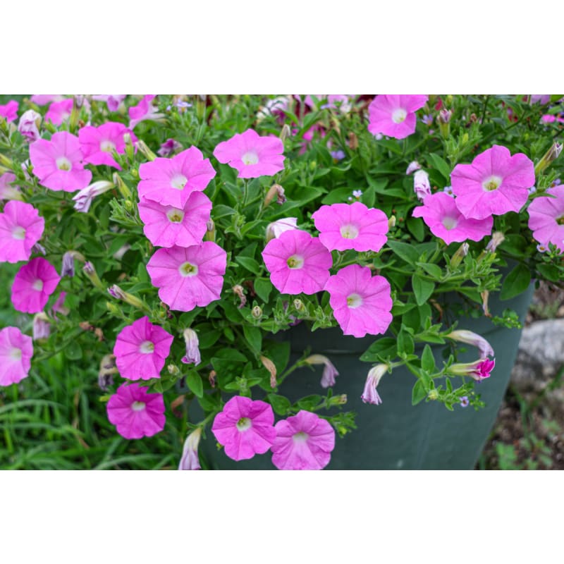 Incredible trailing blossoms in shades of pink with lavender overtones. The high-impact colors will blanket your garden bed. Shock wave series rebound amazingly well from heavy rain and tolerate high heat and humidity. Deadheading is not required as the spent blossoms drop off on their own. This powerhouse petunia is a heavy feeder so don’t forget to fertilize regularly. Flowers are 2”, slightly smaller than the Easy Wave series. Useful in baskets, window boxes, and bedding. Spreads up to 36”.