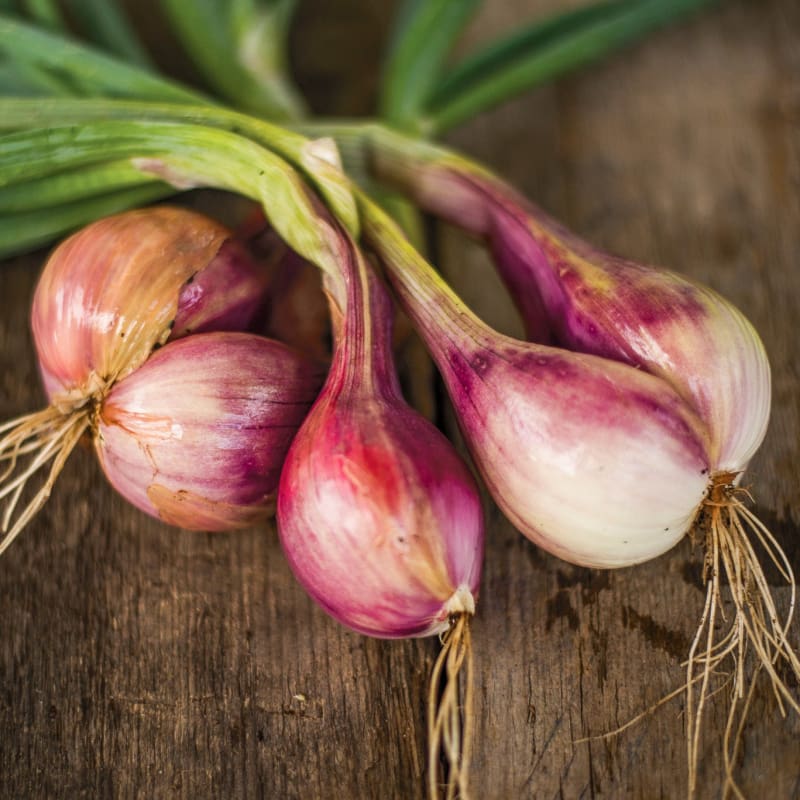 Tear drop shaped bulbs have reddish brown skin with a whitish pink interior. The Conservor Shallot produces large, quality bulbs that are mostly single and store extremely well.