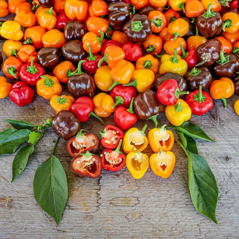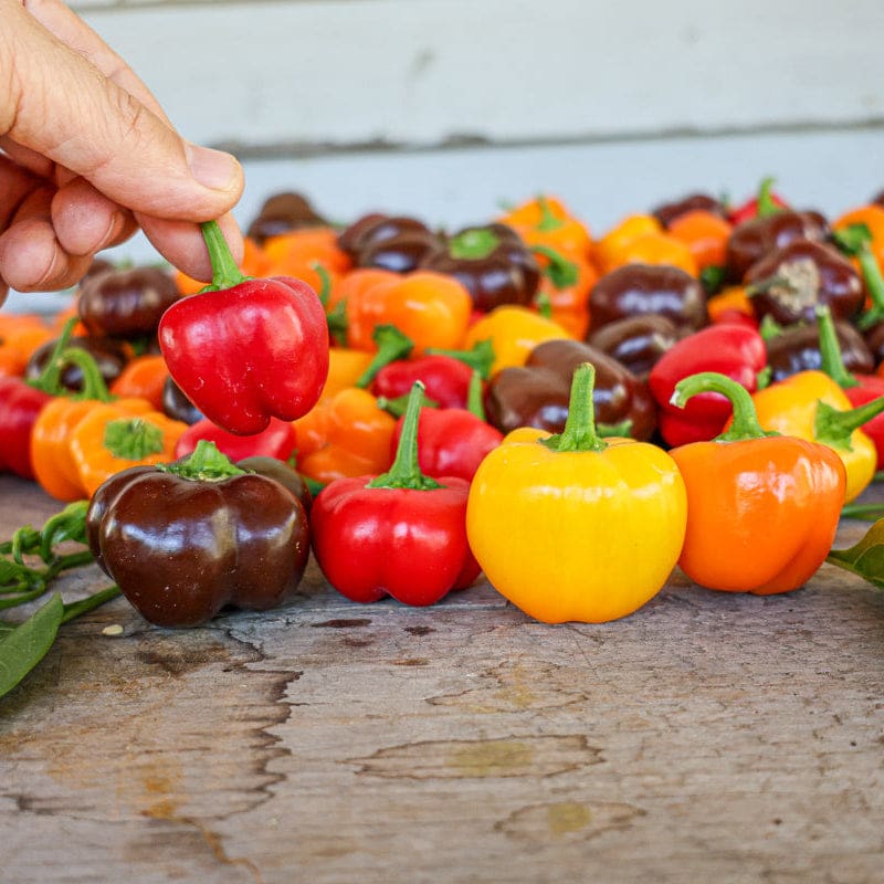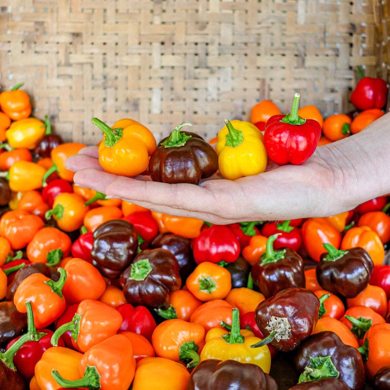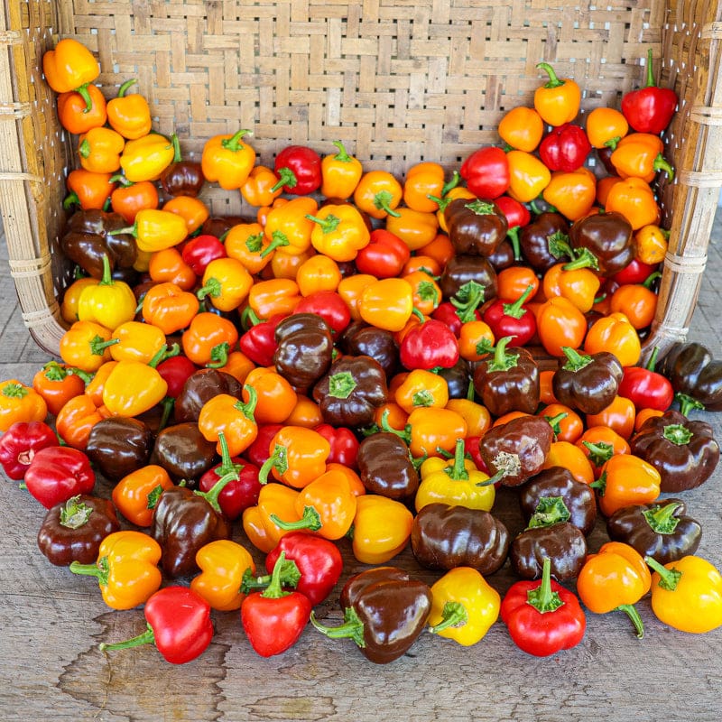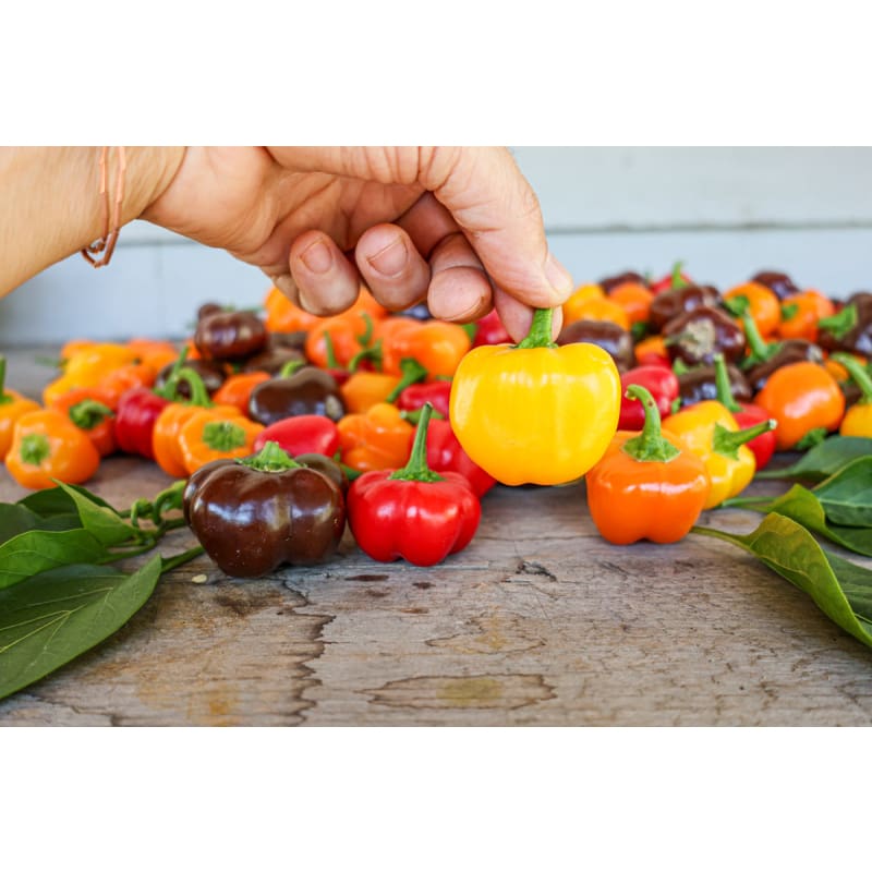 The wee little peppers in this blend are such a blast of fun to grow either in the garden or on the patio. Peppers are tiny, some only being an inch long and wide. Compact plants grow to 15” in height. The Mini Belle Blend Pepper is absolutely cute and robustly sweet-tasting, added to salads, vegetable platters, or for mini stuffed pepper hour d’oeuvres.