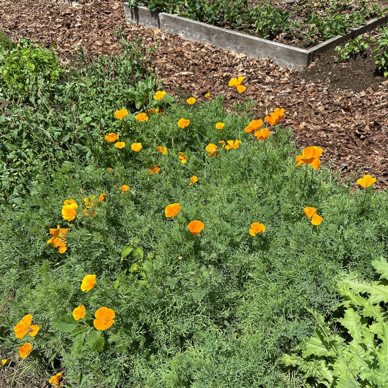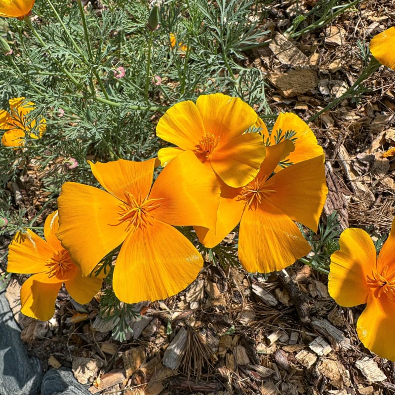 This is the true California poppy with 2 inch orange flowers exclusively. 14 to 16 inch foliage is silverish blue and lacy, with plants a foot tall. Flowers close at night and open in the morning. Blooming is profuse, then rests a bit and comes strongly a second time.