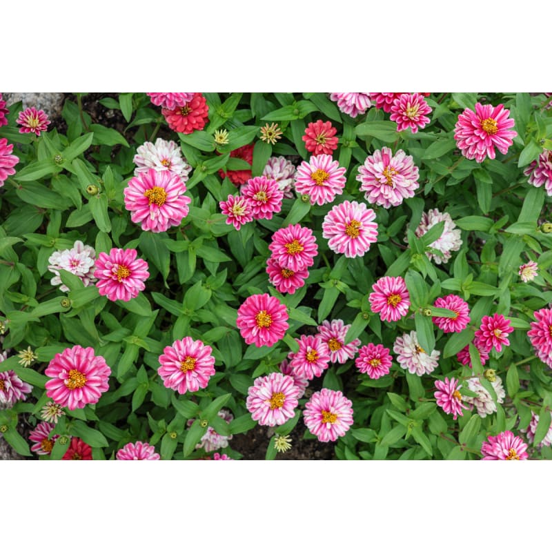 Zahara Double Raspberry Ripple Zinnia is the perfect zinnia for containers or for filling in mid-level plantings in flower beds. Offering an abundance of fully double blooms, it makes a colorful display all season.  The Zahara series has bigger, more robust flowers and plants than the Profusion series zinnias. Award-winning zinnia with strong performance and durability, even in sunny, hot and dry conditions.