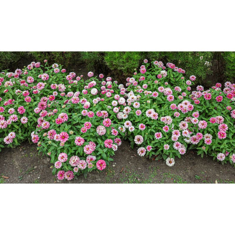 Zahara Double Raspberry Ripple Zinnia is the perfect zinnia for containers or for filling in mid-level plantings in flower beds. Offering an abundance of fully double blooms, it makes a colorful display all season. The Zahara series has bigger, more robust flowers and plants than the Profusion series zinnias. Award-winning zinnia with strong performance and durability, even in sunny, hot and dry conditions.