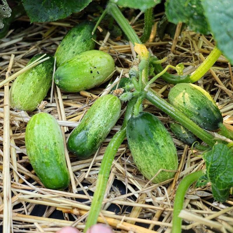 Unusual mini snacking and pickling cucumber. Contrasting vivid green and white speckled skin with a refreshing flavor, sweeter and crisper than other cucumbers. Quirk Cucumber plants have short vines, around 3’, with prolific yields of 2-3” fruits that grow close together. Easy to grow and no need to wait for pollination, plants are gynoecious and parthenocarpic. They can be grown in the ground, containers, or in a greenhouse—great resistance to Powdery Mildew and Cucumber Beetle Mosaic virus.
