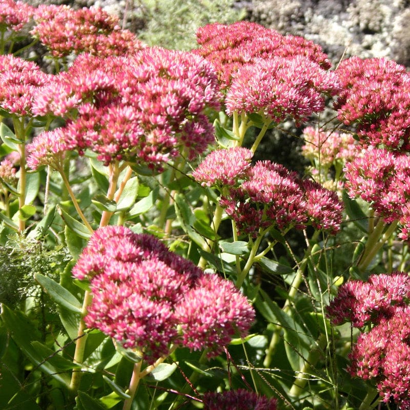 This is a mixture of 5 different sedum colors with different blooming schedules so it should produce flowers from June through August and make showy ground covers all season. The flowers are different shades of yellow, pink, and rose and the shapes are also different. The foliage is the characteristic succulent green. Sedum are low maintenance and durable and offer interesting texture in the garden.