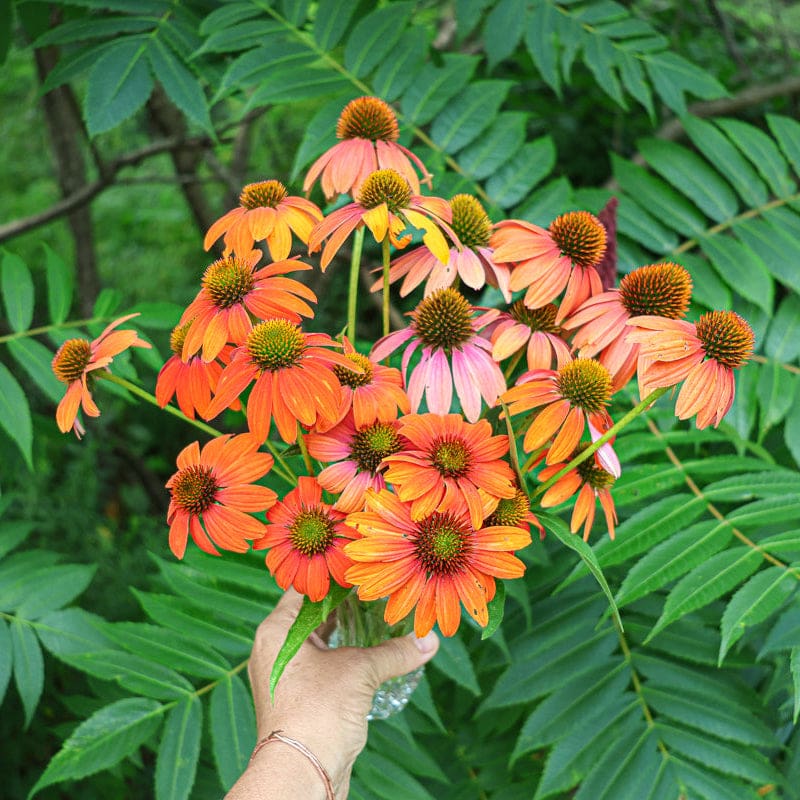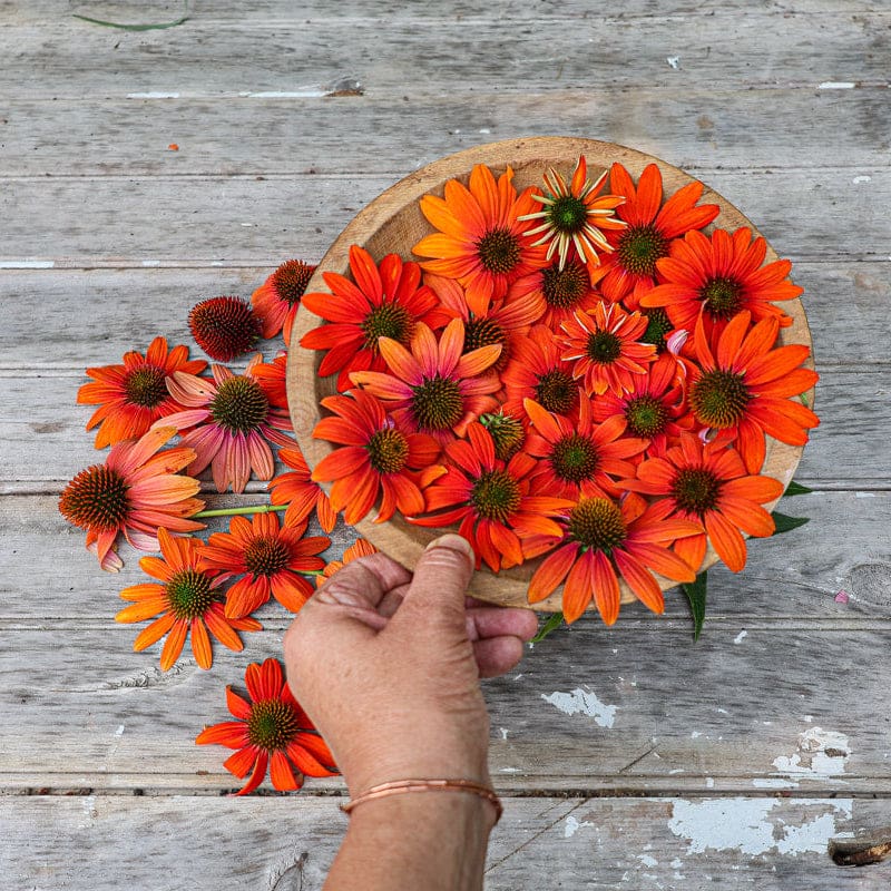 Artisan echinacea is a new series with an elevated performance. Soft Orange Artisan Echinacea is easy to grow from seed and has an extremely strong branching structure, making dense, sturdy plants that are jam-packed with long-lasting flowers. The bold and glowing, uniquely colored flowers- pastel orange fading to a rosy blush slowly fade into softer tones and can bloom in the first year. Grow in the ground or containers.